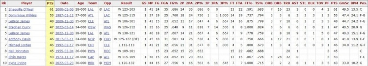 奥尼尔也成为生日夜得分最高的NBA球员,详情如下: