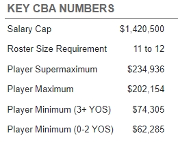 WNBA本赛季工资帽142万美元,超级顶薪23万4,顶薪20万,底薪(球龄0-2)6万2、底薪(球龄3年以上)7万4。