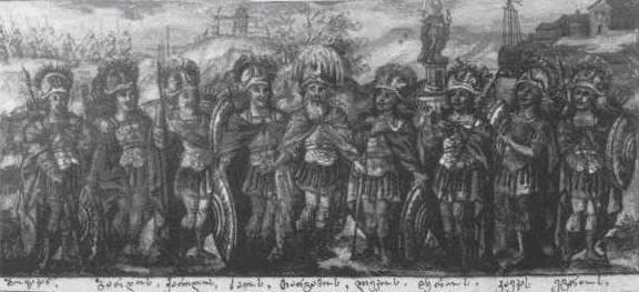 格鲁吉亚是外高三国中的基督教国家(另一个为亚美尼亚)。根据格鲁吉亚的基督教传说,格鲁吉亚人的祖先是雅夫的孙子Kartlos。Kartlos在今天格鲁吉亚中部建立了国家,也就是卡特里,也就是格鲁吉亚的名称kartve。L一词来自当地的另一个地区——高加索伊比利亚。Kartvelo,就是卡特里和高加索-伊比利亚的合写。
