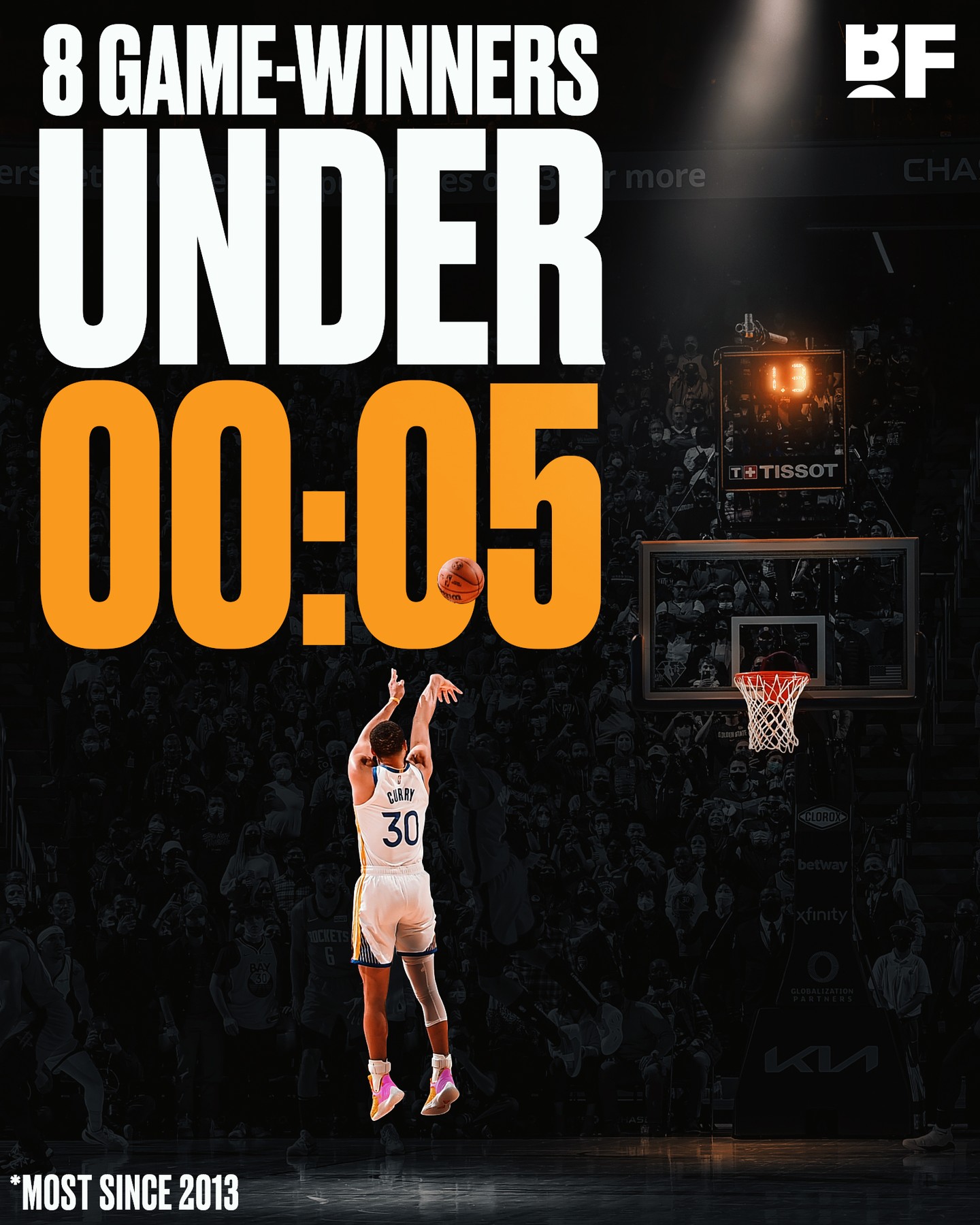 2013年以来库里8次投中5秒或以内的致胜球 同期联盟最多
