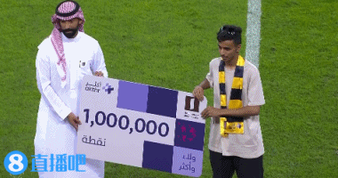 3月10日讯 沙特联第20轮,利雅得胜利vs吉达联合。中场休息,现场进行了幸运抽奖,一名球迷喜提手机一部,一名球迷抽到了汽车,一名球迷获得100万沙特里亚尔(约185万人民币)。
