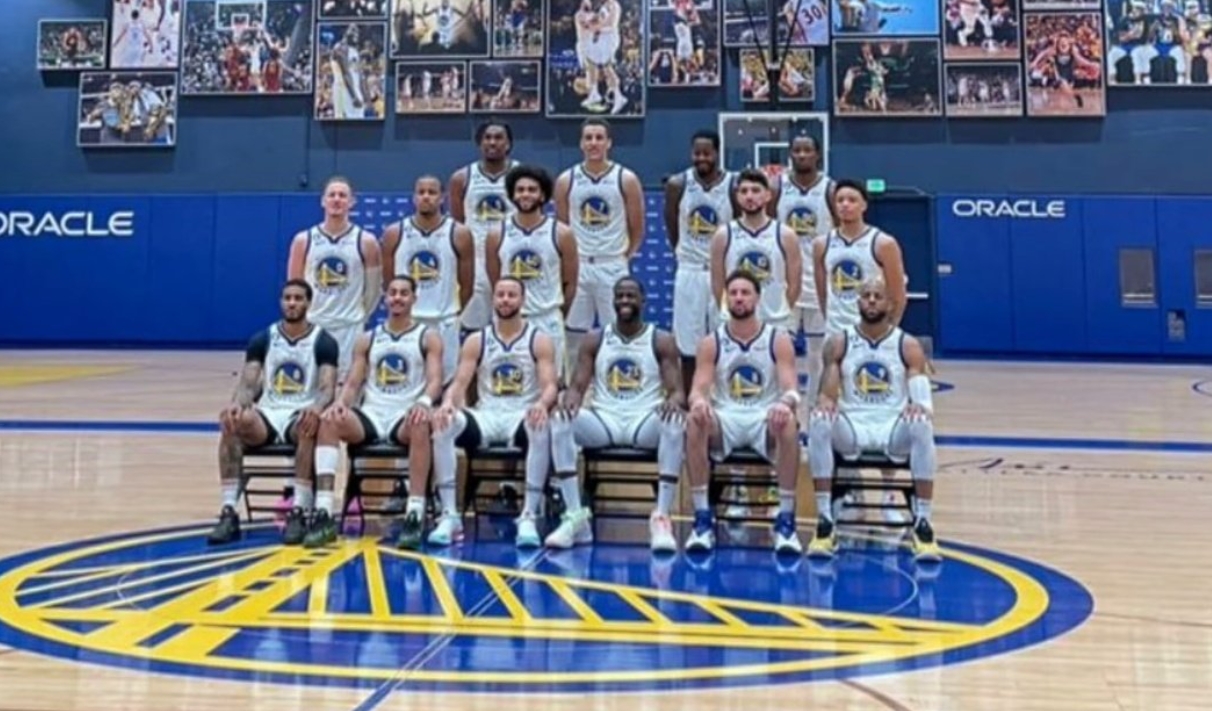 3月14日讯 勇士今日拍了每个赛季后段的全家福。