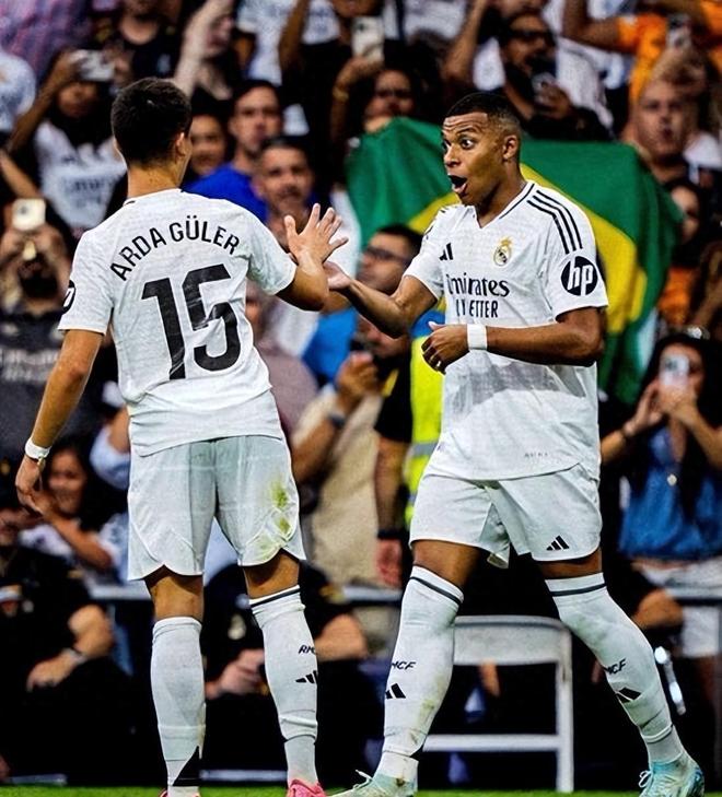 本场比赛,姆巴佩再次成为球队取胜的最大功臣。尽管皇马整体实力占优,但上半场却遭遇顽强阻击。姆巴佩表现尤为抢眼,多次威胁对方球门,他与罗德里戈的射门均被赫塔菲门将大卫·索里亚神勇化解。而主队也并非毫无机会,亚历克斯·桑克里斯曾以一记势大力沉的凌空抽射,可惜皮球擦着立柱偏出,险些破门。易边再战,主帅阿隆索做出调整,维尼修斯替补登场,试图加强进攻。然而双方在中场缠斗激烈,比赛一度陷入僵局,皇马迟迟无法打破僵局。转折点出现在比赛第77分钟,赫塔菲后卫艾伦·尼翁在一次防守中与维尼修斯发生激烈碰撞,被裁判直接出示红牌罚下,客队由此占据人数优势。仅仅不到3分钟后,皇马便抓住机会打破僵局:阿尔达·居勒尔送出精准传球,姆巴佩冷静转身,一脚精准的射门直挂球门远角,帮助球队取得1比0领先。这粒进球也让姆巴佩延续了火热状态——这是他连续第11场比赛取得进球。据Opta统计,姆巴佩成为自2014/15赛季克里斯蒂亚诺·罗纳尔多以来,首位在西甲赛季前9轮比赛中打入至少10球的球员。比赛尾声,赫塔菲再遭打击,球员亚历克斯因累积两张黄牌被罚下场,彻底失去翻盘希望。皇马在最后阶段稳守优势,将1比0的比分保持到终场哨响。凭借这场来之不易的胜利,皇马在联赛中以2分优势力压巴塞罗那,重回积分榜首位。这也是皇马连续第8次在各项赛事中战胜赫塔菲,展现了绝对的统治力。