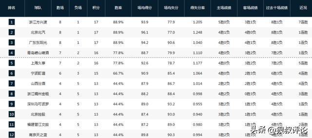 广厦以一波7连胜强势冲上积分榜第一的位置,除了客场不敌辽宁,广厦分别拿下了山西,北京等含金量十足的竞争对手。